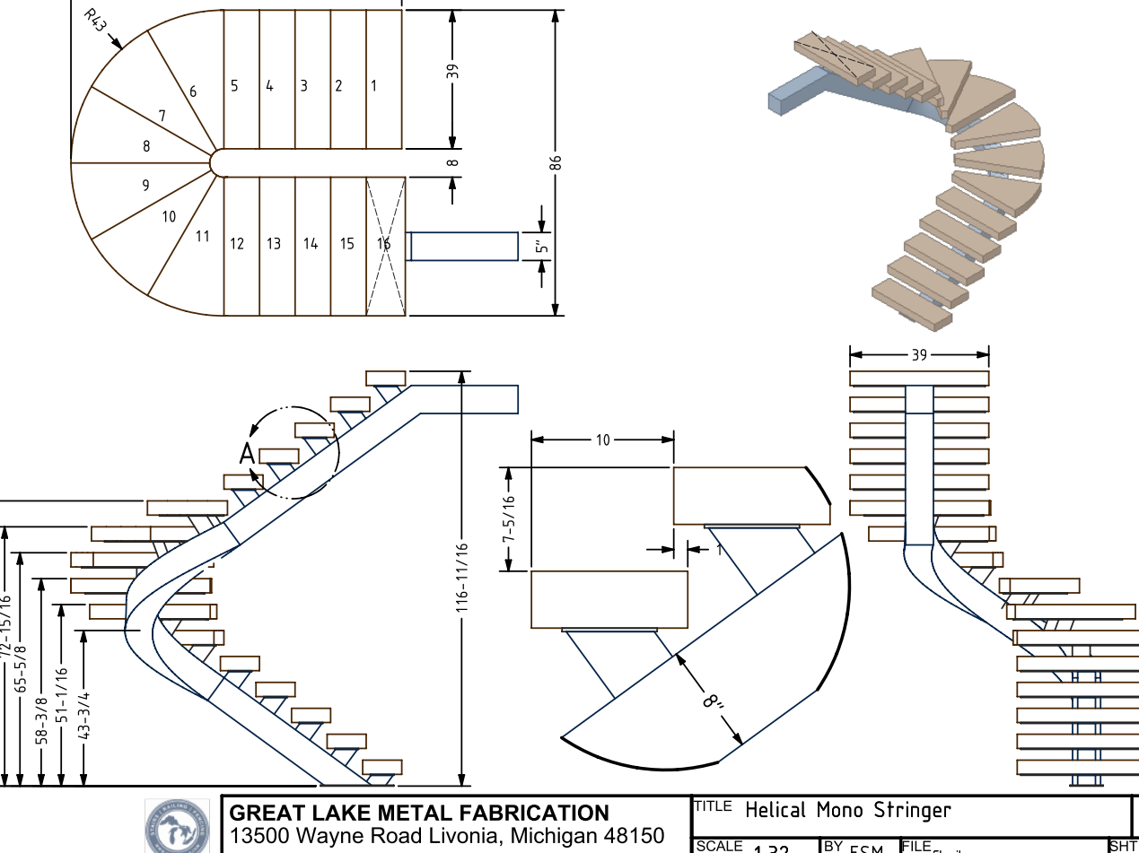 Staircase builders now require CAD shop drawings for building code compliance.